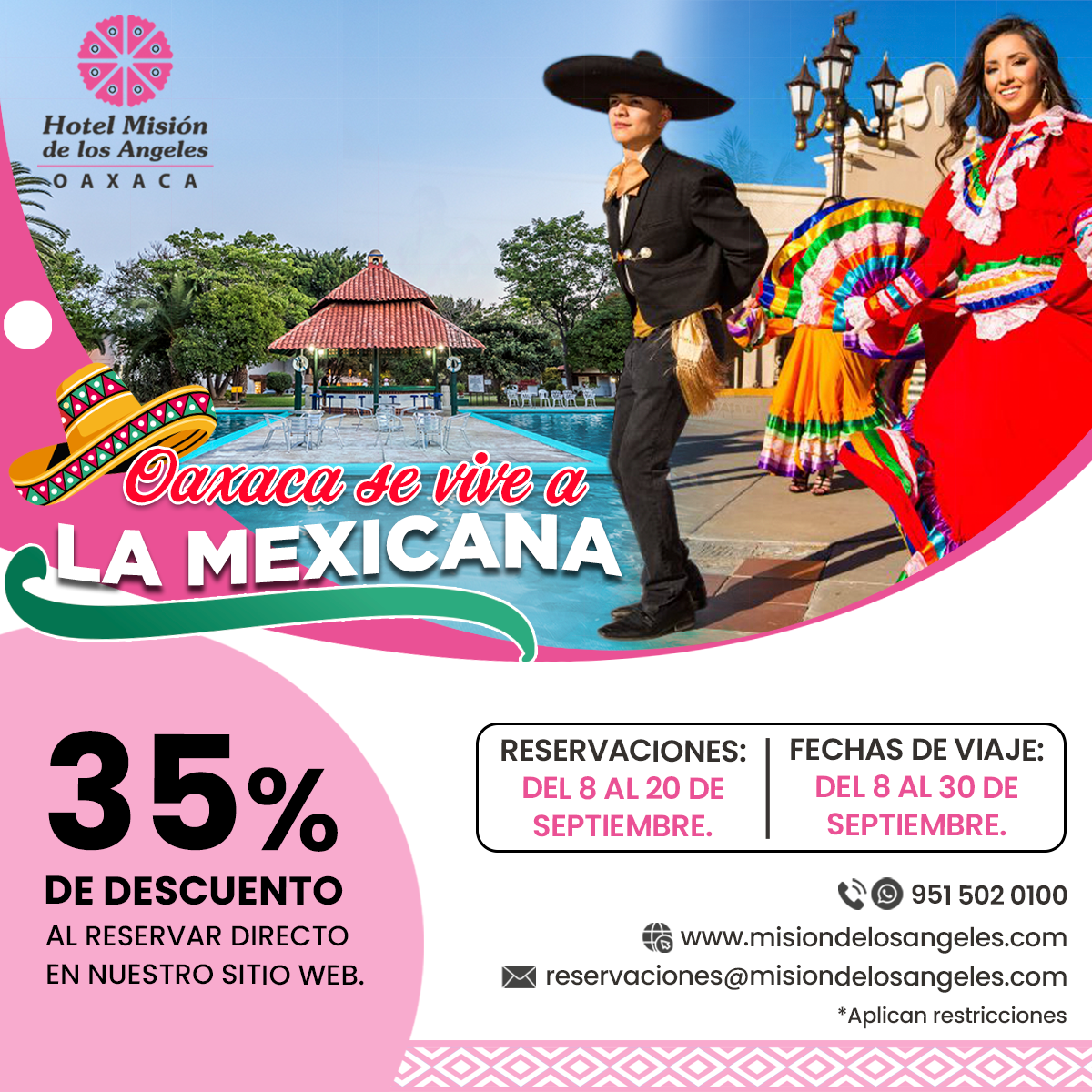 Misión de los Ángeles, combina esa irresistible sensibilidad oaxaqueña en cada rincón, está rodeado de hermosos y extensos jardines, en donde podrá gozar de tranquilidad y esparcimiento. La sazón de su cocina oaxaqueña es reconocida por el paladar más exigente. Quien visita Oaxaca no debe dudar en hospedarse en Misión de los Ángeles, es el lugar ideal tanto para tomar unas placenteras y tranquilas vacaciones, como para realizar reuniones de trabajo, congresos y convenciones.
